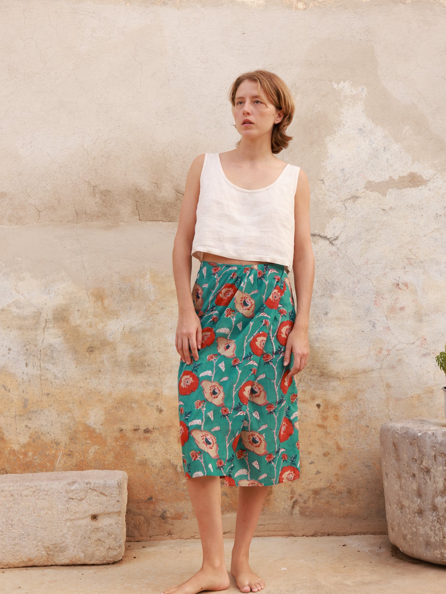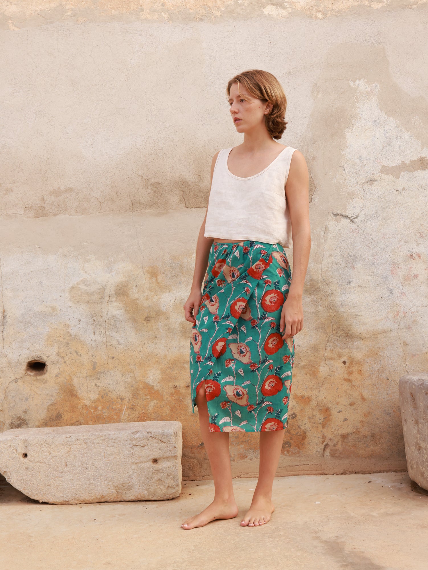 Greta es una falda crossover de largo midi, confeccionada en 100% lino natural. Fresca y ligera, está diseñada para realzar la silueta con sutileza y movimiento.